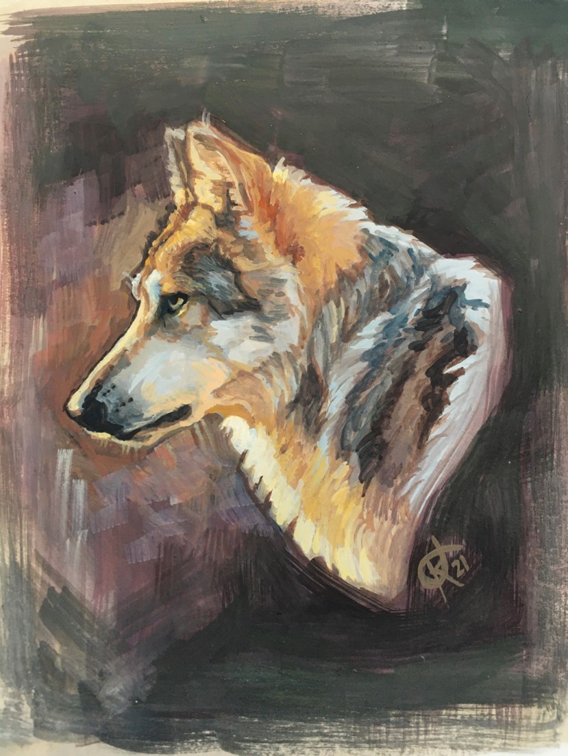 Pia Langfeld received her B.A. in Visual Communications at UC San Diego, emphasizing in black and white photography. Conventional painting was always a hobby for her, but she did not pursue it seriously until the beginnings of smart phones and the emergence of the digital art world. She now divides her painting time equally between watercolor and digital painting. Having lived all over the world, she now resides in Colorado with her husband and two awesome descendants of wolves.