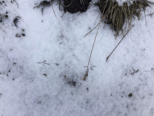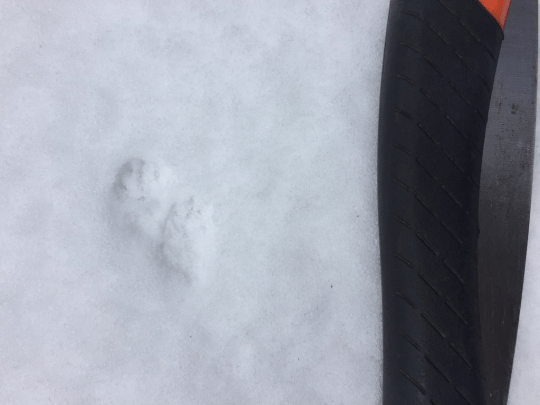 The following day I surveyed the trail up to Johnson Lake. Snow began below the trees around 10,500 feet and was well above my waist height in drifts by 11,000 feet. For most of the trip I was able to stay on top of the snow, sinking through only occasionally. By mid-morning the sun had warmed the snow’s surface just enough to create excellent snow tracking conditions. I found a bear track in the mud, a beautiful trail of bobcat tracks, a bounding weasel trail, multiple coyote, and a set of robin tracks in the snow.
